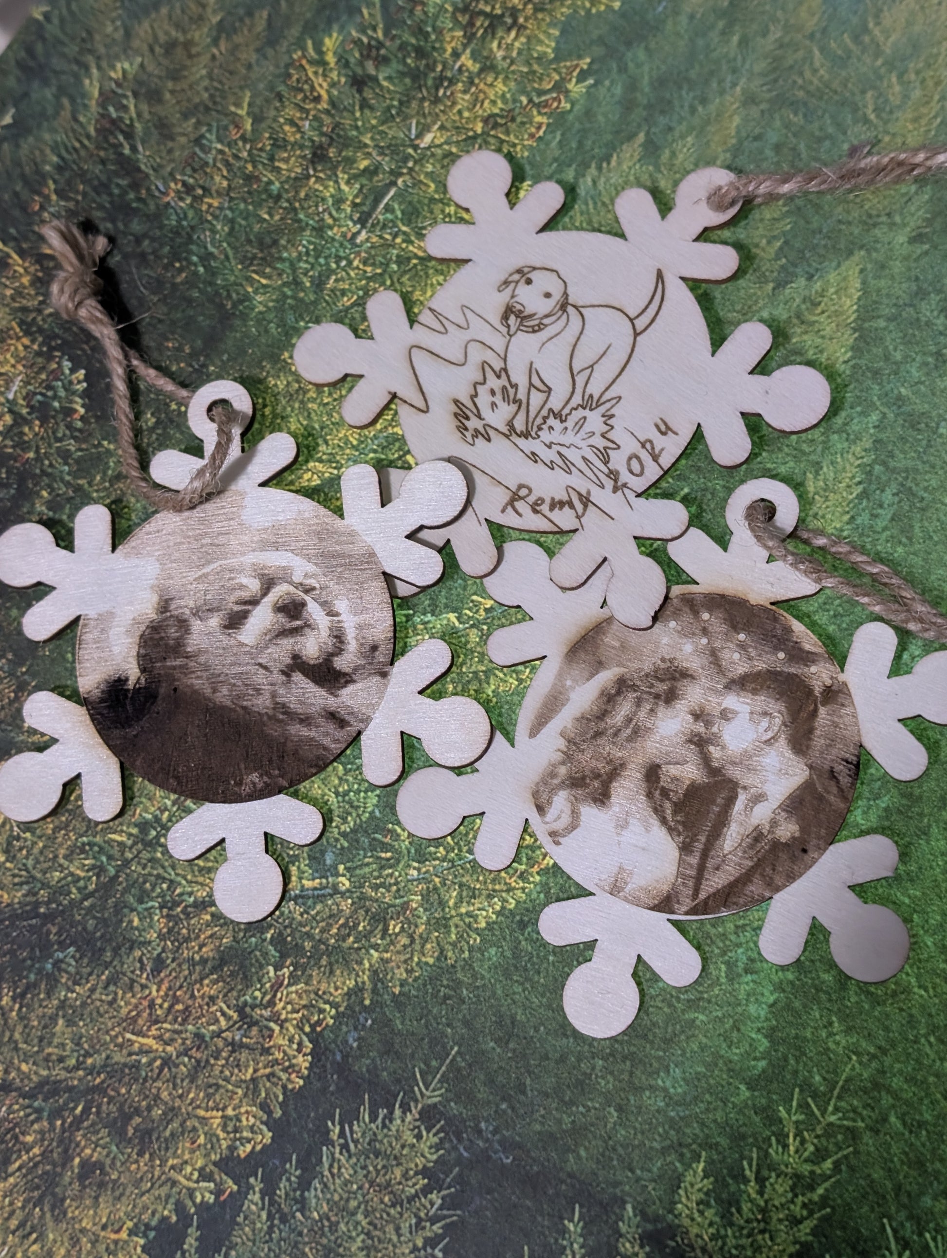 Add a personalized touch to your holiday decor with our Custom Snowflake Ornaments. Made from laser engraved wood, these unique ornaments can showcase special messages or names for a crafty and heartfelt touch. Simply upload your file and add your desired text in the notes section to create a truly one-of-a-kind ornament.